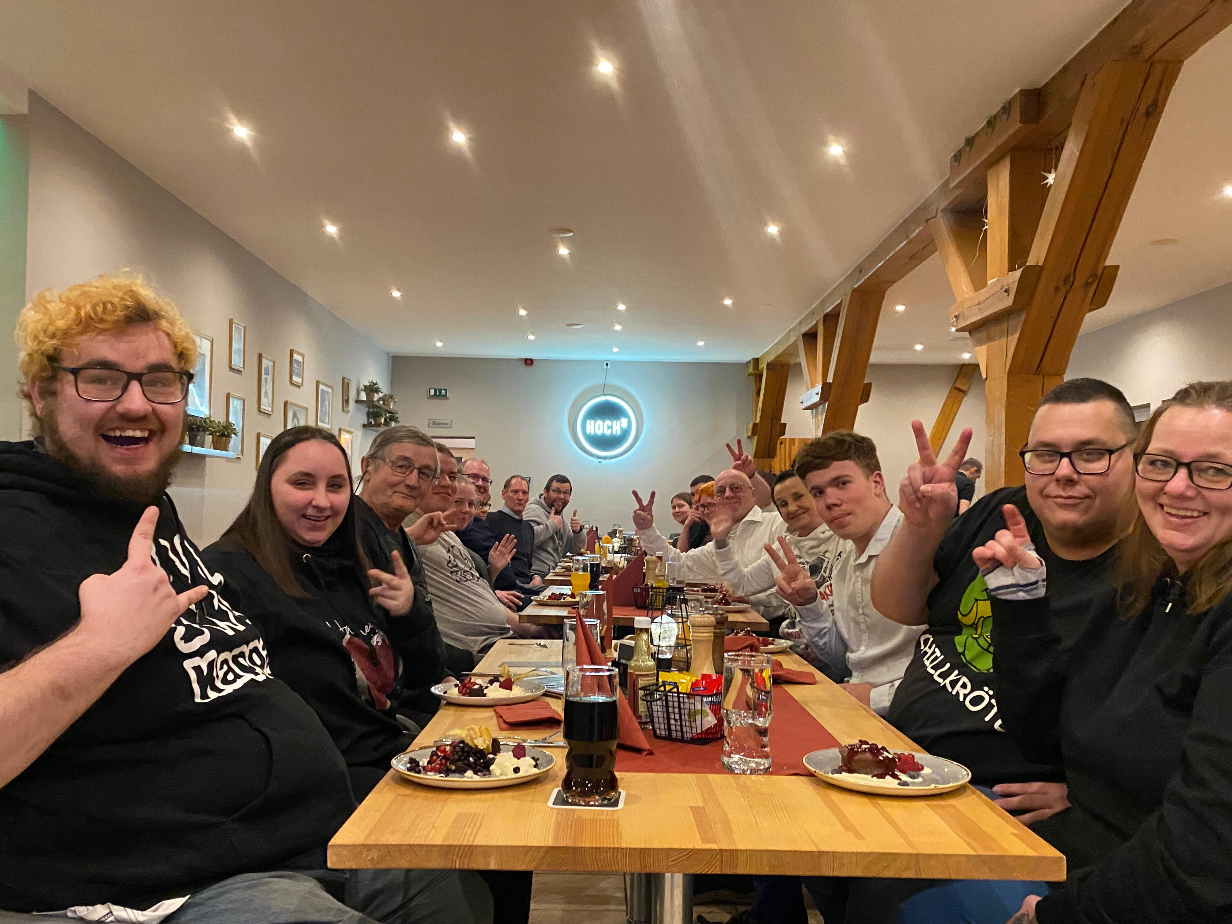 (6, 7) Beim gemeinsamen Essen und Bowlen
